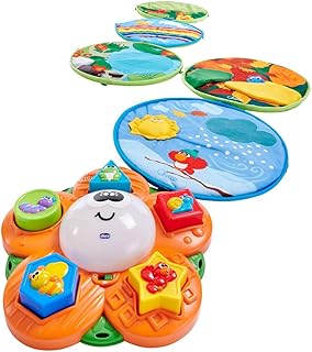 Chicco Jahreszeiten Baby Spielmatte, Multisensorische Matte und Formensortierer mit 5 weichen Matten und zentraler Blume mit Geräuschen und Lichtern - Baby- und Kinderspielzeug 9+ Monate