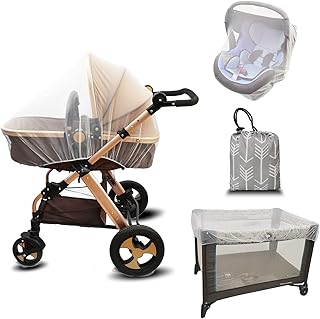 Baby Mosquito Net for Stroller with Storage Bag| Stroller Netting Mosquito with Organizer for Cribs| Infant car seat Insect mesh net| Easy Installation|Black Pink White (White)