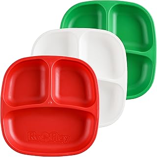 Re-Play Made in USA 3Pk Geteilte Platten mit tiefen Sides Für Easy Baby, Kleinkind, Kind Fütterung - Red, White & Kelly Green (Weihnachten/Feiertage/Italienisch)