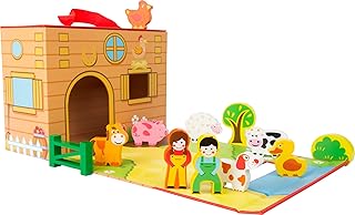 Small Foot 11111 Spielkoffer Bauernhof Robuster Pappe Und Bunten, Mehrfarbig