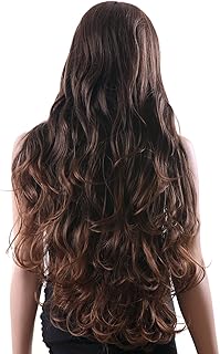 SONGMICS Perücke Frauen Damen Haar Wig Sexy lockig Lang Braun für Karneval Fasching Cosplay Party Kostüm WFS133