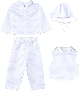 inhzoy Baby Jungen 4 Teiliges Taufanzug Formale Hochzeit Geburtstag Anlass Kleidung Satin Smoking Anzug Bestickte Hemd West Hose Und Hut Set Weiß