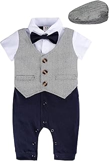 Baby Anzug Junge Hochzeit, Neugeborenes Overall Bodysuit Strampler Gentleman Smoking Kurzarm Overall mit Flache Kappe