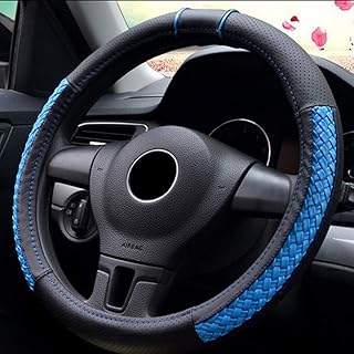 Universal Auto Lenkradhülle - BauZeit Mikrofaser Leder Lenkradbezug 15 Zoll/37-38cm Anti Rutsch Lenkradabdeckung Atmungsaktiv Lenkradschutz Soft Flechten Lenkradschoner für Fuhrwerk LKW Van,Blau
