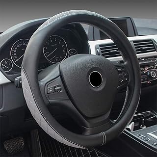 Universal Auto Lenkradhülle - BauZeit Lenkradbezug 15 Zoll/37-38cm Anti Rutsch Lenkradabdeckung aus Mikrofaser Leder Lenkradschutz Soft Lenkradschoner für Fuhrwerk LKW Van,Schwarz & Grau