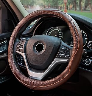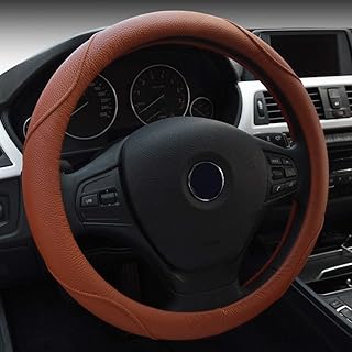 Universal Auto Lenkradhülle - FLKAYJM Mikrofaser Leder Lenkradbezug 15 Zoll/37-38cm Anti Rutsch Lenkradabdeckung Atmungsaktiv Lenkradschutz Lenkradschoner für Fuhrwerk Transportwagen LKW, Braun