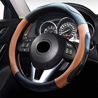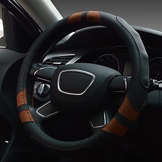 Universal Auto Lenkradhülle - BauZeit Lenkradbezug 15 Zoll/37-38cm Anti Rutsch Lenkradabdeckung aus Mikrofaser Leder Lenkradschutz Soft Lenkradschoner für Fuhrwerk LKW Van,Schwarz & Braun
