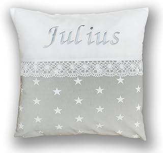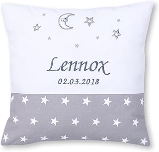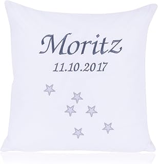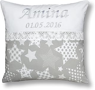 Amilian® Kissen 40 x 40 cm mit Namen Datum Sternchen Grau MIT STICKEREI