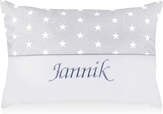 Amilian® Kissen 40 x 60 cm mit Namen Datum Sternchen Grau/Hellgrau