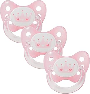 Dentistar® Silikon Schnuller 3er-Set – Größe 1 für 0-6 Monate – Zahnfreundlicher & kiefergerechter Silikonschnuller mit Dental-Stufe – Rosa mit Kronen-Motiv – BPA-frei – Made in Germany