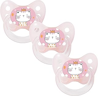 Dentistar® Silikon Schnuller 3er-Set – Größe 2 für 6-14 Monate – Zahnfreundlicher & kiefergerechter Silikonschnuller mit Dental-Stufe – Rosa mit Katzen-Motiv – BPA-frei – Made in Germany