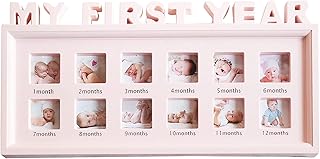 GUTEINTE Baby Bilderrahmen Mein erstes Jahr 12 Monate, Baby Wachstum Memorial Erstes Jahr mit 12 Fotos, Bilderrahmen für Wand und Tisch, Geschenke zum Geburtstag, Wanddekoration (rosa)