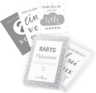 ⭐ HOCHWERTIGE ERINNERUNGSBOX - mit 61 Baby Meilenstein Karten im A6-Format mit weich abgerundeten Ecken. ⭐ GUT LESBARE BESCHRIFTUNG - alle Babykarten sind auf mattem Premium-Karton gedruckt und mit extra großen Buchstaben für optimale Erkennbarkeit auf den Babyfotos. ⭐ GESCHENK FÜR WERDENDE MÜTTER - für Schwangerschaft, Babyparty oder Geburt. Baby Cards als Geschenk für die. 40 Meilensteinkarten zur Schwangerschaft inkl. Geschenkbox - für Jungen und Mädchen - Geschenk zur Geburt Babyparty Geschenkset Fotokarten Babykarten Geschenkidee Baby Erinnerungskarten 4.3 (2) 14,99€ Lieferung bis Montag, 13. März GRATIS Versand durch Amazon Klein-Unternehmen