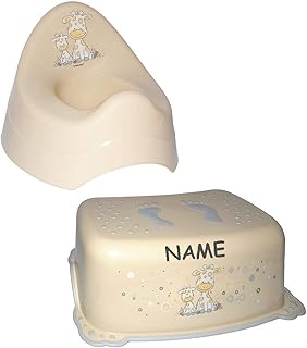 2 TLG. Set: Anti RUTSCH - Trittschemel & Töpfchen / Nachttopf - Musik - Giraffe - Creme - incl. Name - Tritthocker / Kindersitz - Kinderschemel & Kindertr..