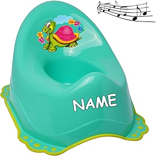 alles-meine.de GmbH Musik & Sound - Anti RUTSCH - Töpfchen / Nachttopf / Babytopf - türkis - blau - Mint _ Tiere - Schildkröte & Blumen _ inkl. Name - Bieco - Melody - mit großer..
