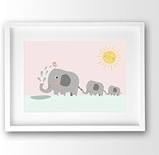 Kinderposter Elefanten Familie pastell rosa, A4 ohne Bilderrahmen, Babyzimmer Bild Deko, Tierposter