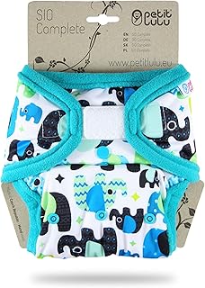 Petit Lulu AI2 Stoffwindel One Size (5-16 kg) SIO Complete Short Insert Klett Baby SIO Komplettwindel Wiederverwendbar und Waschbar Hergestellt in EU (Baby Elefanten (blau))