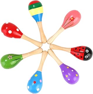 LAANCOO 2ST Holz Maracas Mini-Holz-Kugel-Sand-Hammer-Baby-Rassel Shaker Musical-Ton-Spielzeug für Kinder zufällige Farbe