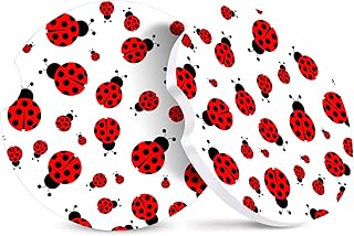2 Stück saugfähige Auto-Untersetzer für Getränkehalter, rote Marienkäfer-Keramik-Untersetzer mit Korkrücken und Fingerschlitz, um Ihre Auto-Becherhalter sauber und trocken zu halten, 6.5 cm.